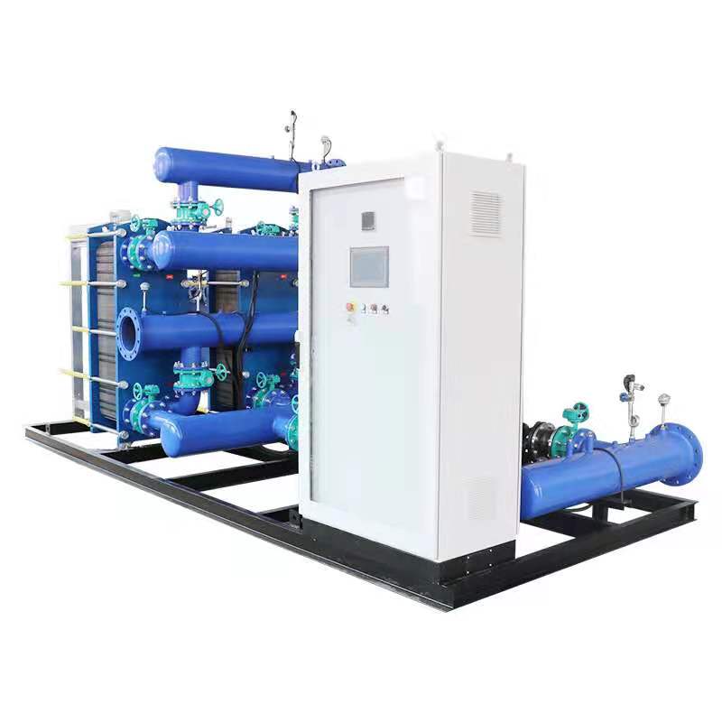 換熱機組由一次側(cè),二次側(cè)和補水系統(tǒng)組成。 初級側(cè)是指熱或冷的供應側(cè),次級側(cè)是指熱或冷的接收側(cè)。 一方面,熱量或冷氣通過板式熱交換器傳遞到次級側(cè),次級側(cè)沒有循環(huán)泵,熱量或冷氣通過循環(huán)水傳遞給用戶。